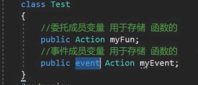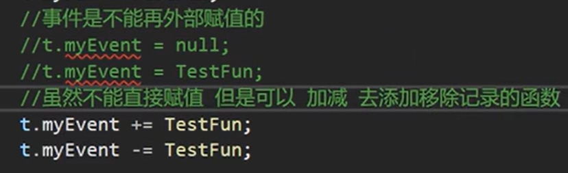 在类里使用的话,就用使用委托,为委托赋值一个匿名函数。因为事件不能在类里声明。